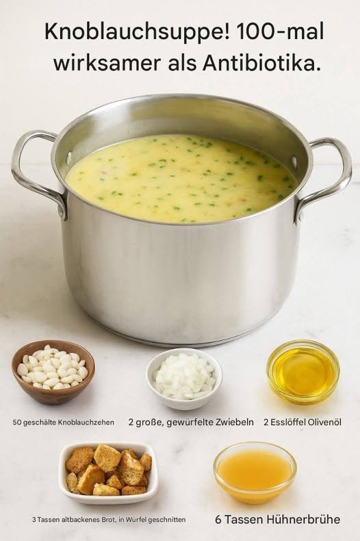 Eine Suppe reich an Allicin, einem starken antibakteriellen Wirkstoff aus Knoblauch 👇